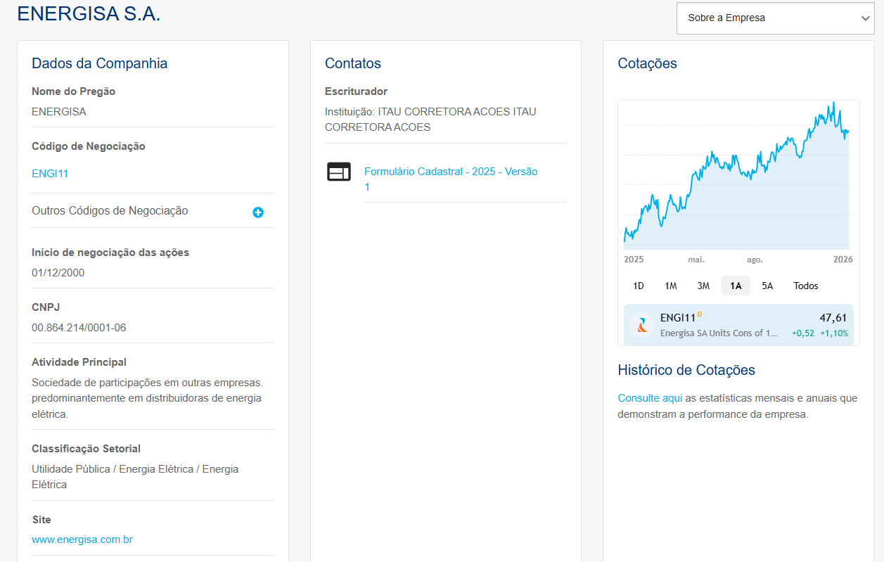 Negociadas na B3 sob o pregão ENERGISA e código ENGI11, as units começaram a ser comercializadas em 01/12/2000. A instituição escrituradora é o Itaú Corretora Ações, garantindo transparência nas operações. Essa estrutura permite que investidores acessem um pacote diversificado de ações, combinando direitos de ordinárias e preferenciais.